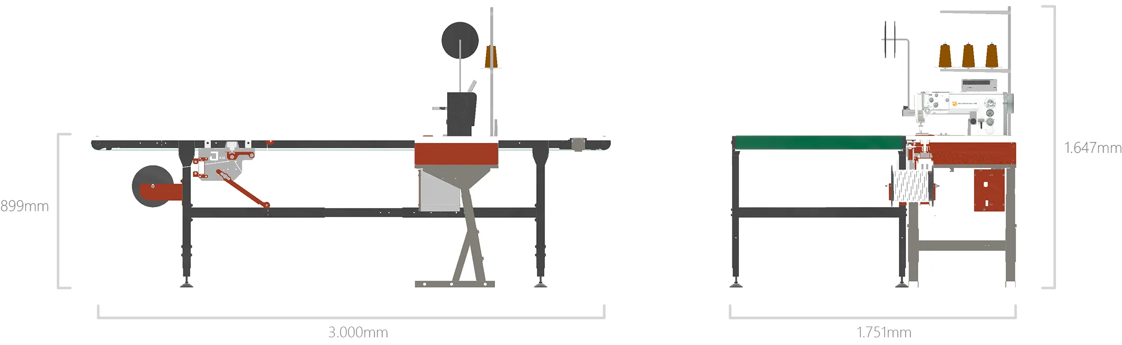 Sewing of a flat piping with a synchronized conveyor belt is an effortless process that can be completed in no time at all.