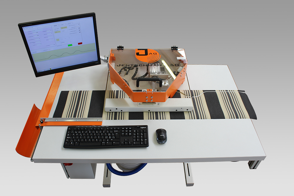 After manual input of valance dimensions or data transfer by computer network and selection of the desired cutting pattern, the operator feeds the valance into the machine and starts the cutting process. The feeding system moves the valance along the X-axis, whereas the cutting head moves on the Y-axis. Differences of the repeat over assembly seams are automatically compensated.