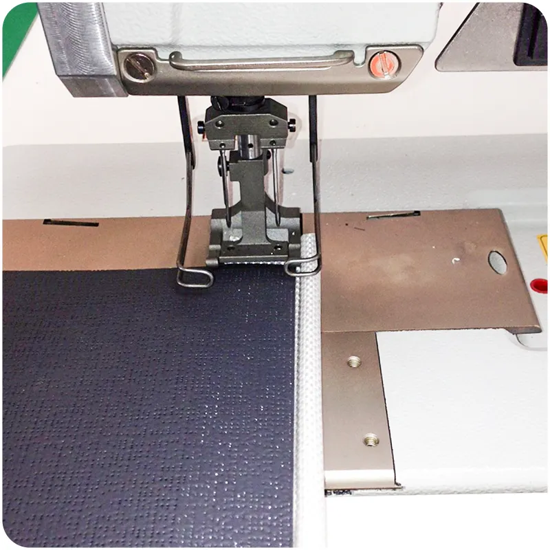 Sewing of a flat piping with a synchronized conveyor belt is an effortless process that can be completed in no time at all.